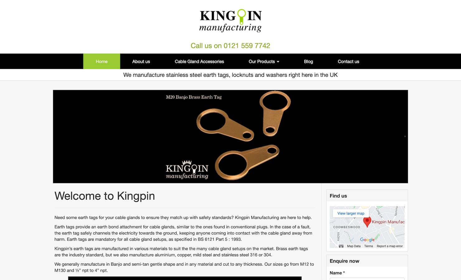 This clean, fast, responsive website was built by UK-based web design agency, Bootcamp Media for Kingpin Manufacturing - a company who specialise in manufacturing metal earth tags for cable glands.