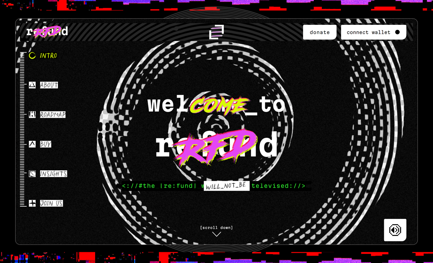Interactive website for $Rfd Refund, one of the most promising crypto projects in the blockchain space. The entry page starts with a preloader and an invitation to begin the journey by jumping down the rabbit hole. Users land on the main page and begin to gradually immerse themselves in the website’s experience. As they navigate through the pages, they follow the white rabbit, uncover hidden messages, and delve deeper into the intriguing world of Refund. Smooth animations and effects are activated when scrolling or interacting with page elements, creating a deeply immersive experience. Certain text or images appear or move as the user turns the page, creating a sense of dynamism and engagement. Built-in 13 cryptographic messages that appear on scrolling add an element of mystery and interactivity. This encourages the user to delve deeper into the content and creates a sense of participation in something exclusive. The use of contrasting colors and graphic effects adds a sense of depth. Some design elements look like an AR effect, creating the impression of a three-dimensional space. The sound effects enrich the emotional response from visiting the site.