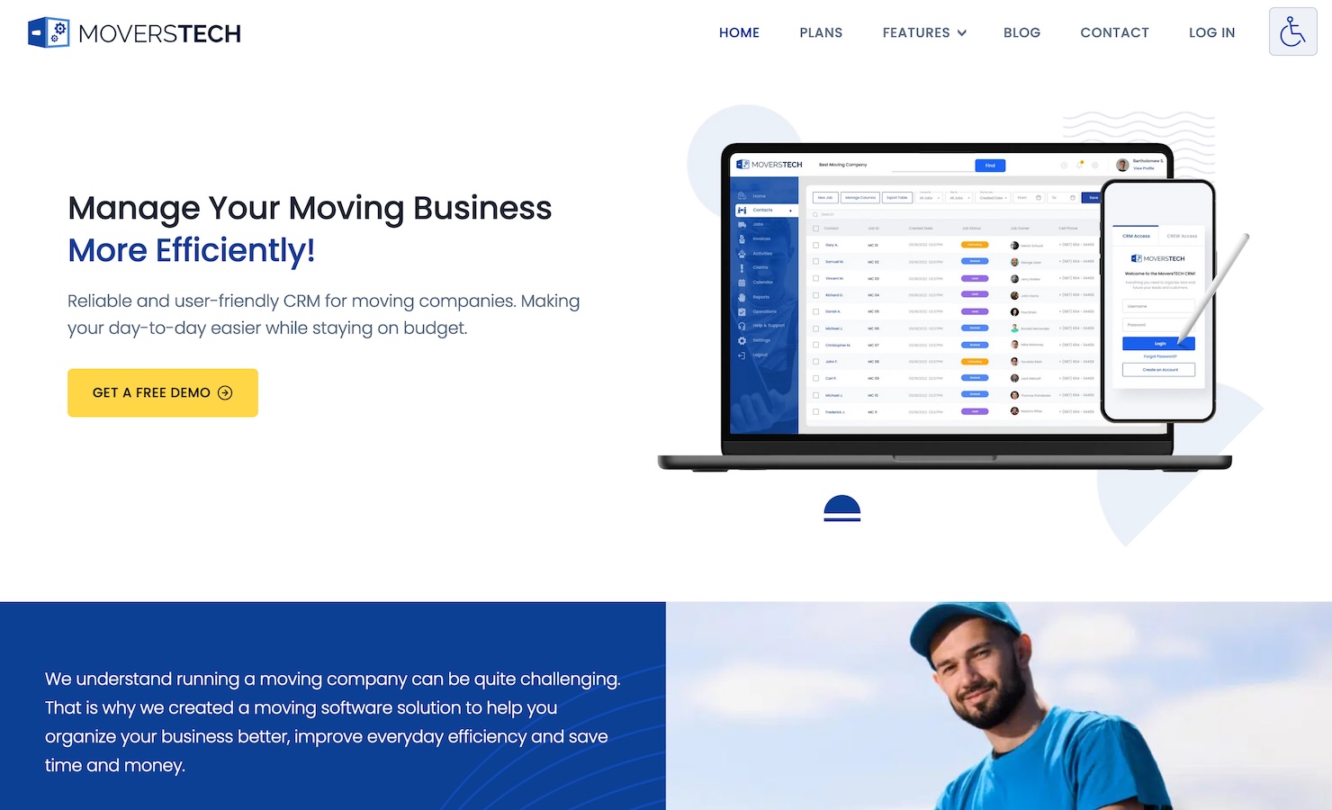 A great CRM for moving company efficiency No matter how much you love your work, increasing sales is always a big stressor for any business owner. Investing in a quality moving company software is all you need to do to manage your business more swiftly and easily so that you have more time, energy, and, consequently money, to invest in your sales strategy. Our moving company CRM software will also help you be in control of your business, keep all your info in one place, and simplify your day-to-day operations. Reach out to Movers Tech CRM and get our moving leads software that'll elevate your business to another level.